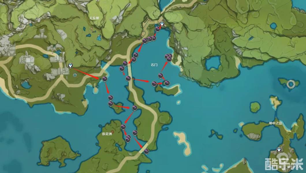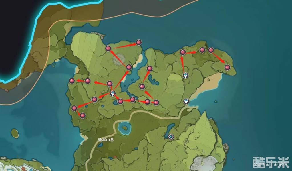 每样只能卖5个,最多获得9800摩拉,其他的都很常见,落落梅和钩钩果给大家标记了路线。