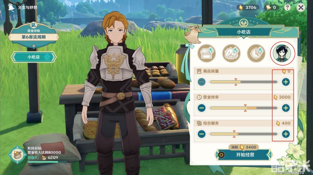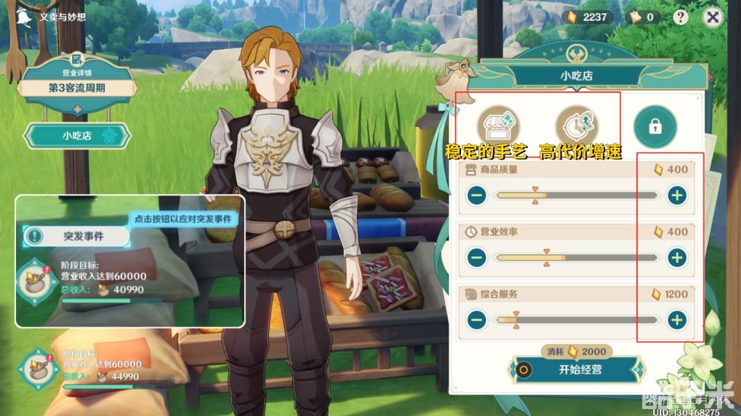 4、「义卖与妙想」玩法中,分两个阶段,筹备资金,和经营店铺。