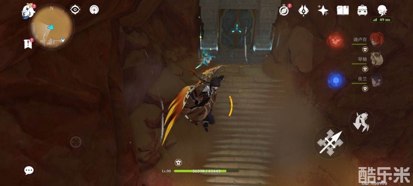 6.慢慢滑翔下来,视角转到身后,就可以发现秘境了。