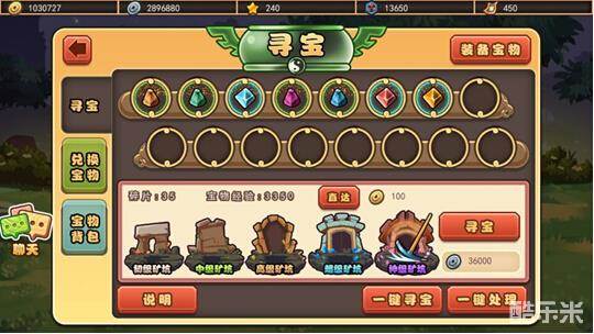 5、挖到超级矿坑会额外赠送1个宝物碎片,挖到神级矿坑会额外赠送5个宝物碎片,宝物碎片可以用来兑换宝物
