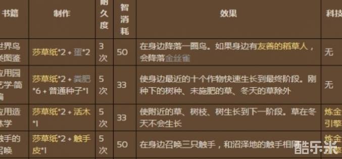 拥有自己的书籍栏,可制作如下书籍: