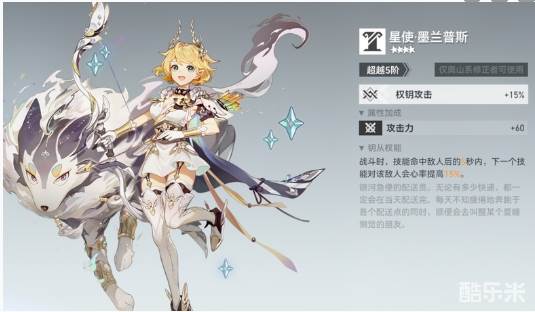 对没有专属的小伙伴来说,奥山系的普通钥从中就只推荐四星的【星使·墨兰普斯】和【星使·莱拉普斯】,前者技能命中后可以提高会心率,后者触发闪避效果可以提高下一个技能的输出伤害;因为哈迪斯无法触发零时空间,所以不推荐五星通用【星使·许德拉】,但如果队友是黎幻+旧誓的之类零时空间覆盖率很高的组合,还是可以带五星通用来对输出轴的。