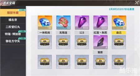 每击败一个boss都可以开箱子,钻石还有很多资源都可以开到。