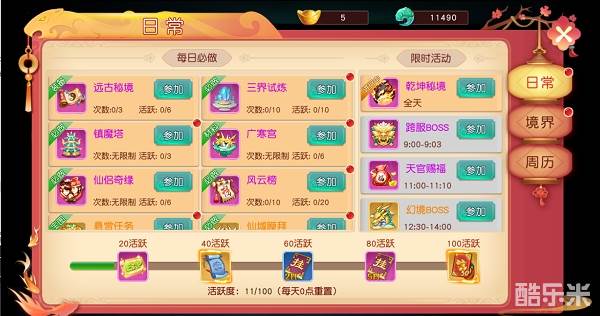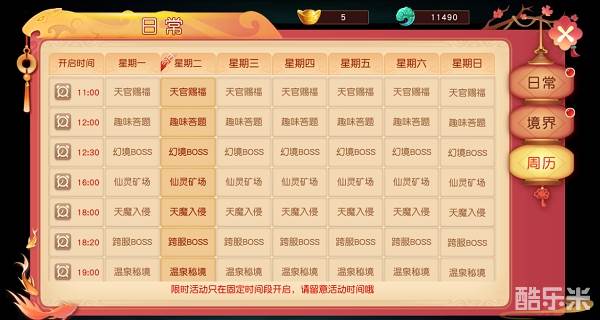 在日常界面的周历标签,可以看到每日的活动列表,合理安排时间,参加限时活动,也是极有趣的。