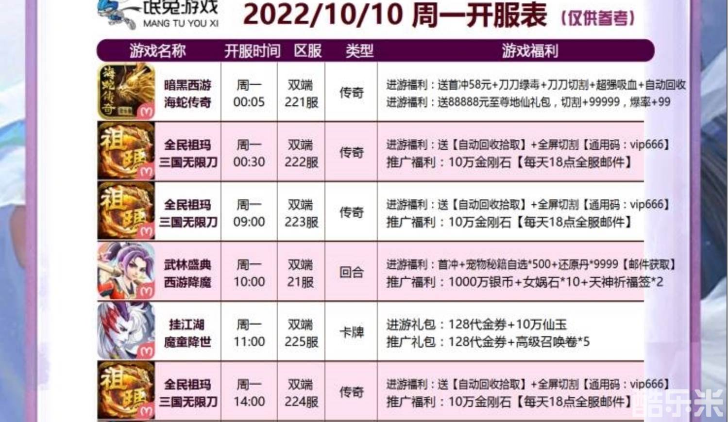 | 暗黑西游-海蛇传奇(欢乐版) | 221区( 苹果- 安卓) | 2022-10-10 00:05:00 |