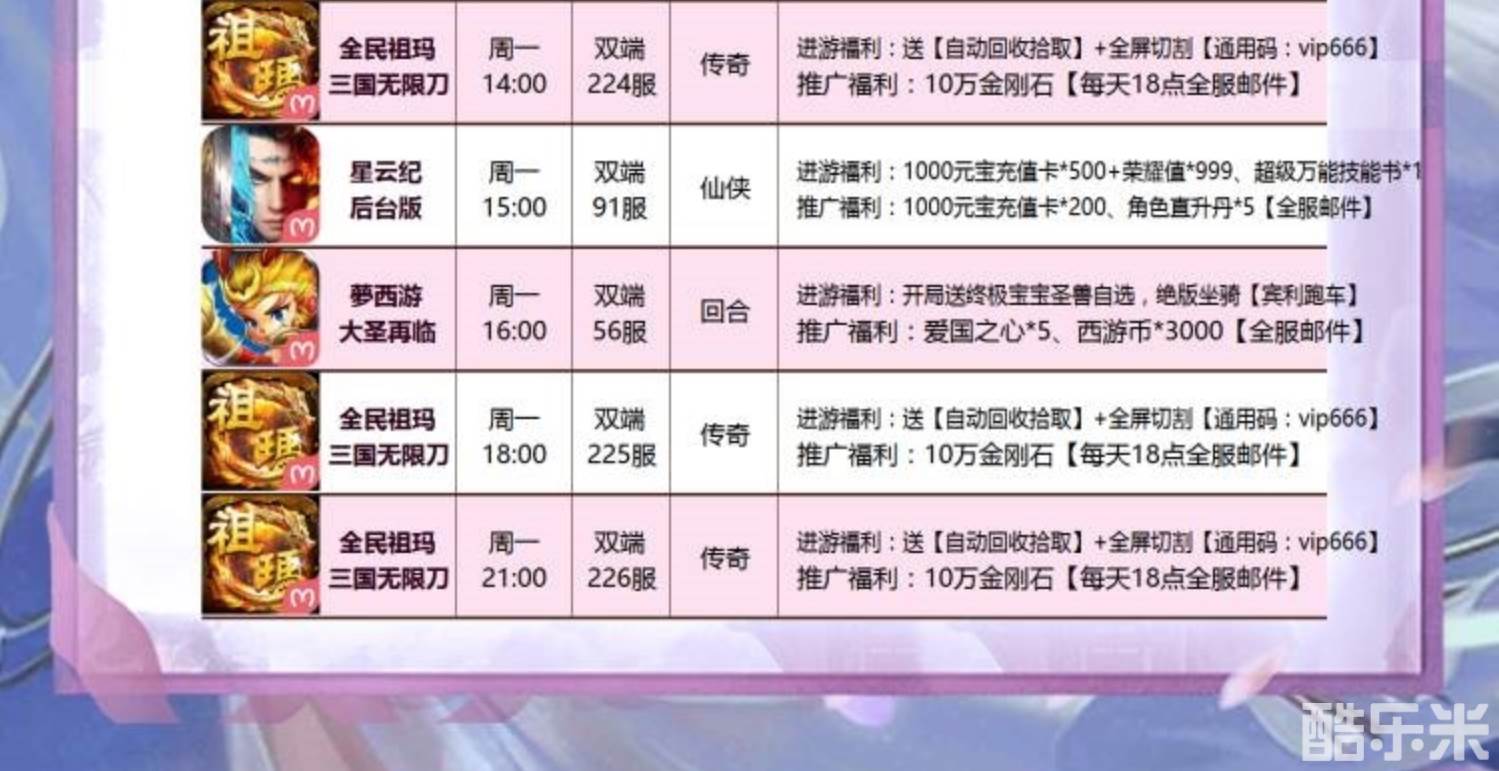| 全民祖玛-三国无限刀 | 225区( 苹果- 安卓) | 2022-10-10 18:00:00 |