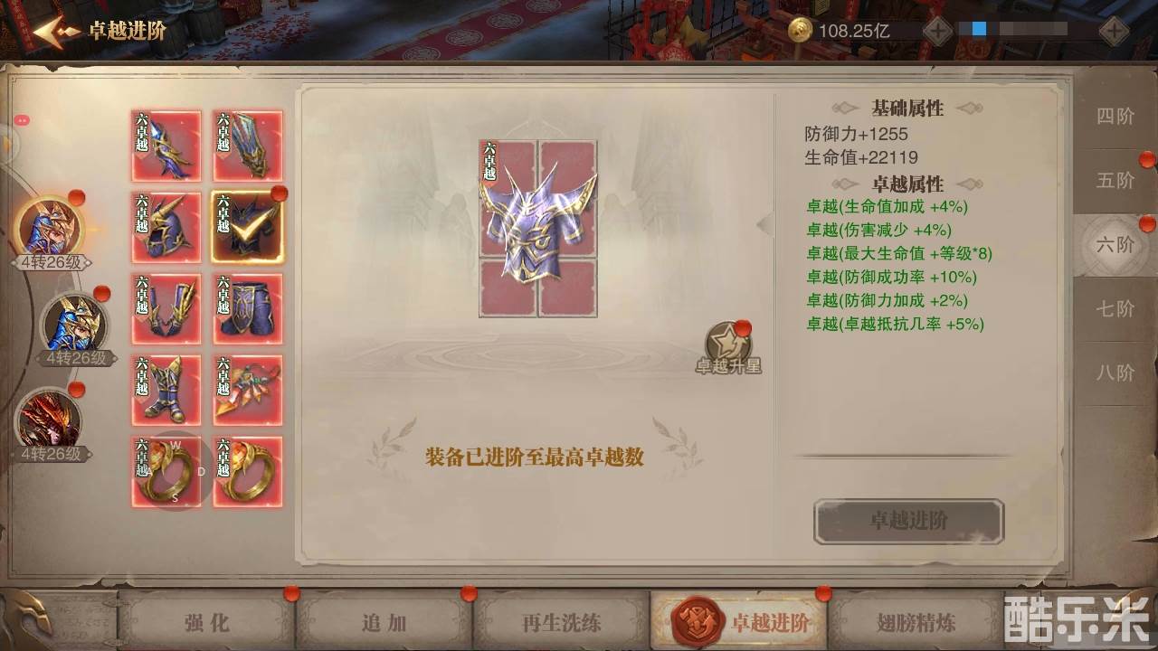 点击卓越进阶界面中间的卓越升星按钮即可打开卓越升星界面,如果没有卓越升星的入口则说明此装备不满足卓越升星的条件。