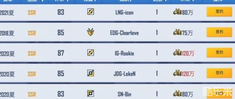 转会市场中分为两种品质的选手,分别是金色和紫色,当然紫色一般来说大家基本上都不会去看,最重要的还是其中的金色角色,首先小编第一个推荐的是UZI。