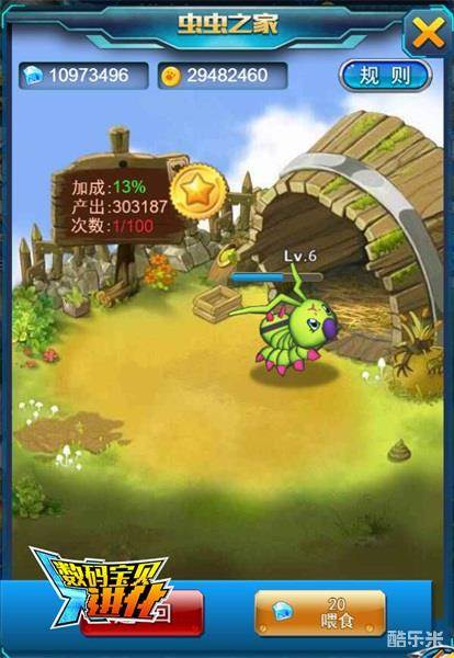 2.每次喂养后,虫虫兽的经验将会增长,达到一定经验后,虫虫兽将会升级。