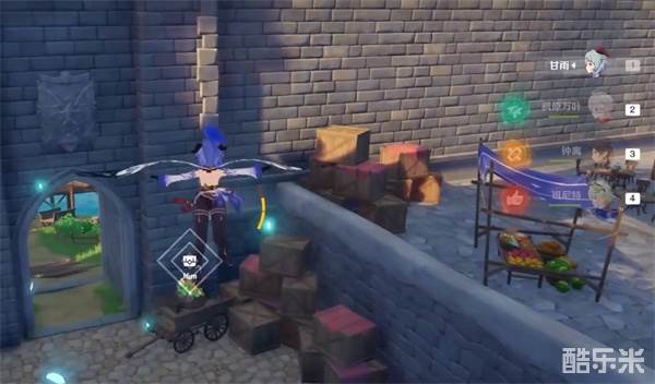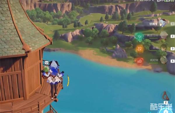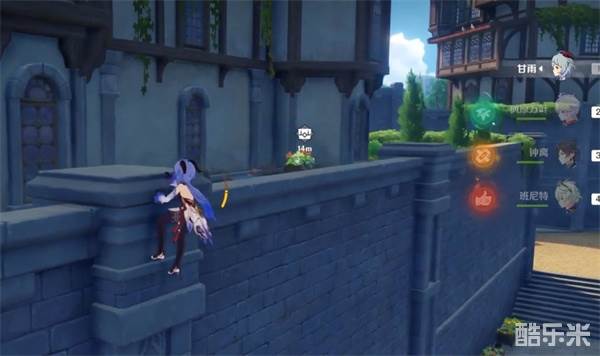 4:然后我们回到蒙德城的传送点,然后我摸呢往后看,爬上去,就是西方向,爬上去就可以看到了;
