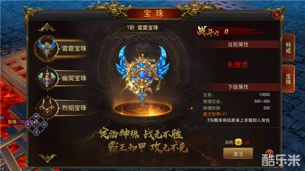 打开位置:主界面—四瓣花按钮—特戒按钮—宝珠界面