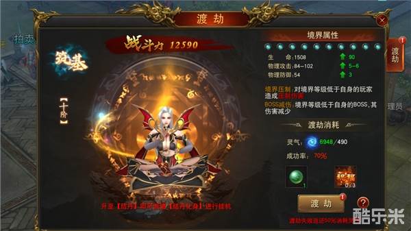 打开位置:主界面-四瓣花图标-修真按钮-渡劫界面