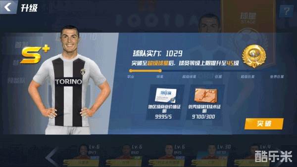 当球员升级到达等级上限的时候需要进行突破,球员才能继续升级和培养,突破所需资源在热身赛中可以获取,球队体力足够的话,一定要多去热身赛积累资源。