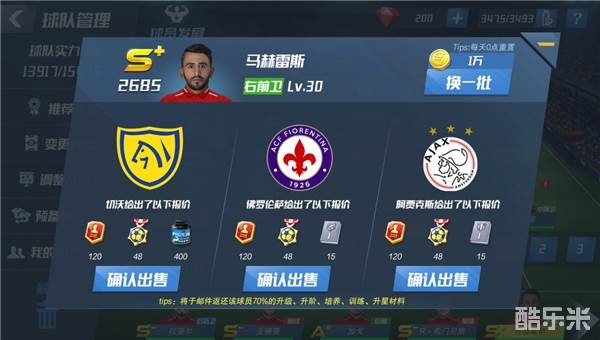 游戏中不需要的球员可以在球员管理界面进行解雇获得转会基金。转会基金可以在转会市场兑换高评级的球员,所以游戏中多余的球员记得解雇兑换资源,总有一天你也能积少成多组一套纯S+阵容。