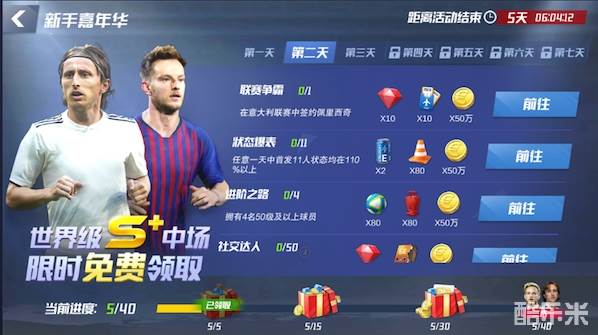 参与新手嘉年华系列任务,7天连续获得海量游戏资源,达成嘉年华进度目标,更能获得世界级S+中场球员(二选一)