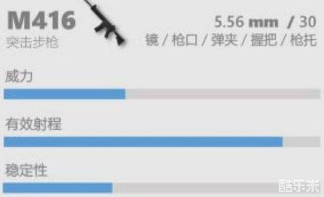 1、突击步枪:首当其冲的绝对是M416,配件齐全之后它的伤害在所有步枪中数一数二,这把枪有单发和全自动两种模式,单发时后坐力不大,在远距离点射上很有优势