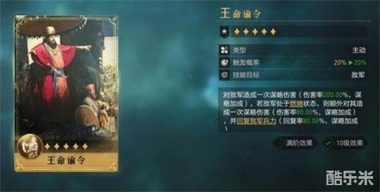 首先欺天之谋,单加80点常驻谋略正好弥补李广走谋略的属性损失,280%伤害率的瞬发更不是武力技能能比的;王命谕令在侵蚀的配合下,具备稳定280%伤害率外加80%回复,就问一句还有谁?
