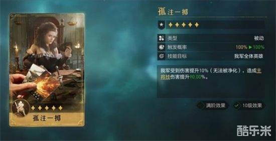 香香主将技综合720%伤害率,同时提升自己40%伤害(武力加成),以后期500武力来计算,最终可提升100%伤害!算是非常强力的一个主将技了。