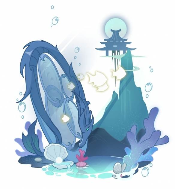在背景的设计上,添加了珊瑚、海浪等海底元素,更能强调刻画出海底龙宫的绝美景致。