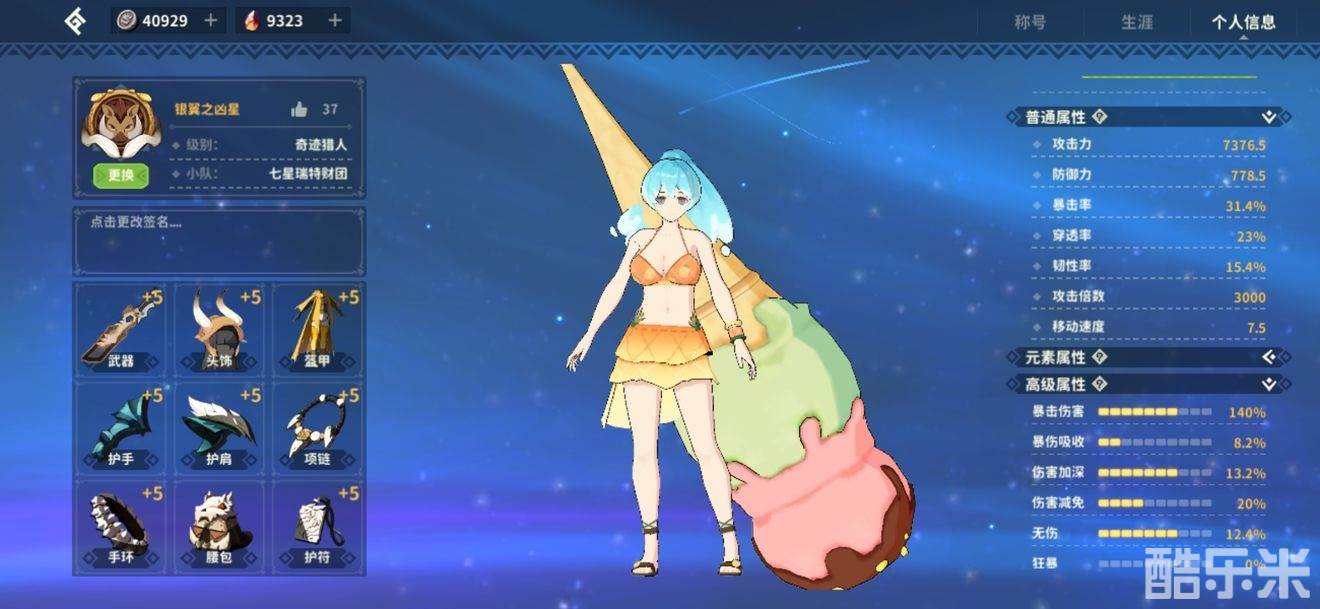 本次计算样本是我的毕业大剑号,全身总共4个蓝孔,全打了易伤。现在我们开始进行计算第一个问题:多少暴击的情况下,爆伤收益等于易伤?