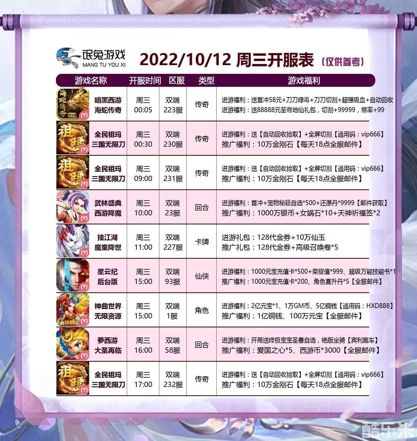 | 挂江湖-魔童降世 | 227区( 苹果- 安卓) | 2022-10-12 11:00:00 |