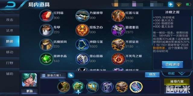 出装推荐:影忍之足+救赎之翼+极寒风暴+魔女斗篷+不祥征兆+冰痕之握