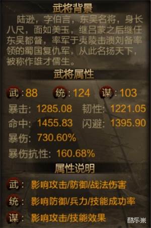 单从属性上面看,作为前排T位,统较高说明生存能力较强,谋略高技能输出频率快,武力值相对较弱,也是所有枪兵的通病。