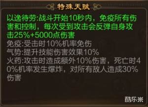 以逸待劳:吴战斗开始10秒内,免疫伤害和控制,并每次受击反弹自身攻击25%+5000点伤害;一重天解锁该属性。