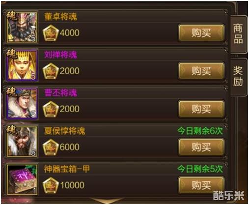 西域商店里也可以刷出将魂,可以慢慢积累成武将呢。