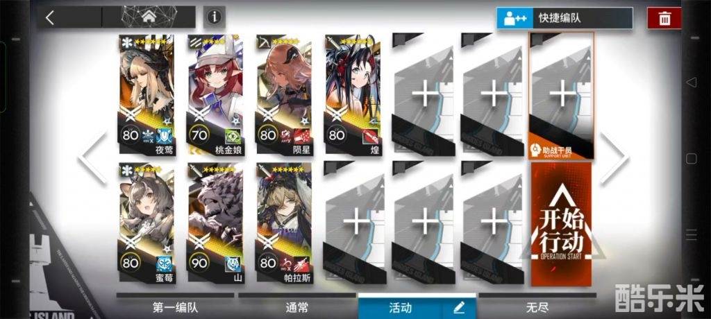 依次部署先锋,煌,蜜梅→,夜莺↓,山,陨星→,帕拉斯↓建议帕拉斯换42等空降干员,速度快很多