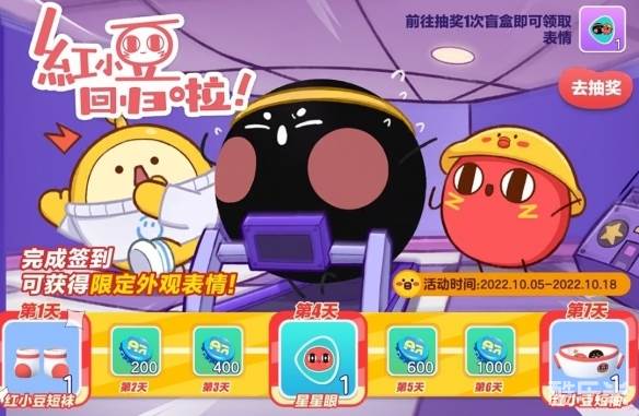 10月5日至10月18日蛋仔们完成七日签到,即可获得限定外观和红小豆表情等超多奖励。