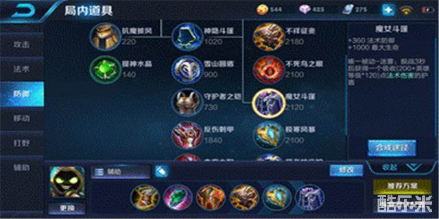 学识宝石:这件装备辅助必出,被动是当自己处于己方经济最低或者经验最低时,每五秒获得5点金币或者经验,游走时还能补足自己的经济,团战为己方队友带来增益,后期这件装备可以更换为梦魇之牙或者冰霜法杖,为团战增加优势;