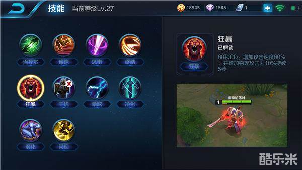 而它的优点是,后期装备成型后,召唤师可以只出一件攻速装,余下的攻速由狂暴弥补,这样就能省出多余的装备栏,选择出输出或者防御装备,让英雄在团战中的实力更上一个台阶,而这个能力则是终结无法比拟的。