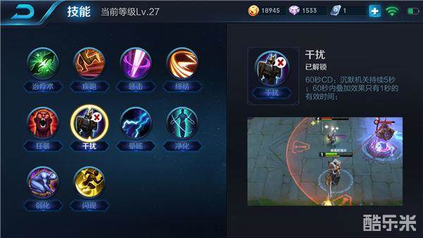 分析:可沉默机关,与其他技能没有可比性,是一个相当独特的技能。很多人觉得,干扰对于团战而言十分鸡肋,起不到任何作用,这个观点或许在暴君主宰处团战或者野区团战中是对的,但在推塔时,就不一样了!塔下战斗往往围绕着双方兵线进行博弈,只要防守方清兵速度快,防御塔就能轻松守住。而攻击的一方只能干着急等下一波兵,就算有一定数量和火力优势也不敢轻举妄动。但进攻方有了干扰技能,防御塔将形同虚设,可以霸道的越塔,进行杀人推塔。