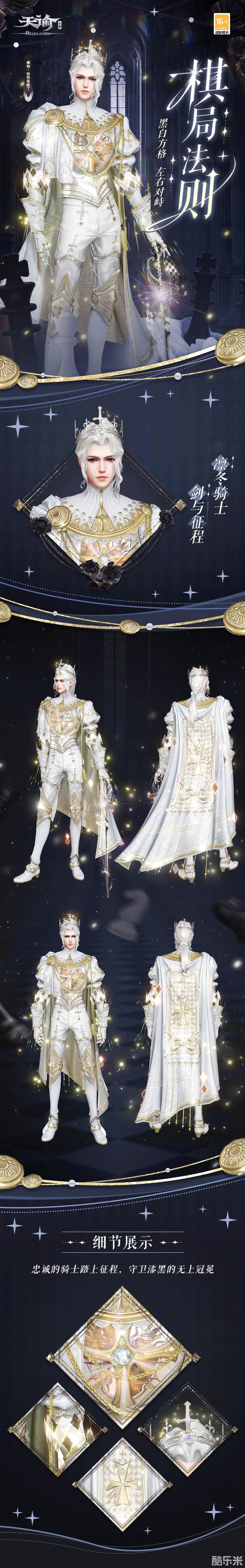 黑与白的世界,残酷的棋局即将开始,只有最后的胜者才能戴上荣誉的皇冠。《天谕》手游新时装“方格传奇”华丽上线!美艳的皇后陛下、英勇的骑士大人和高贵的公主殿下,谁将获得最后的胜利?拨开扑朔的迷雾,让我们一起观看这场玫瑰色的棋局。