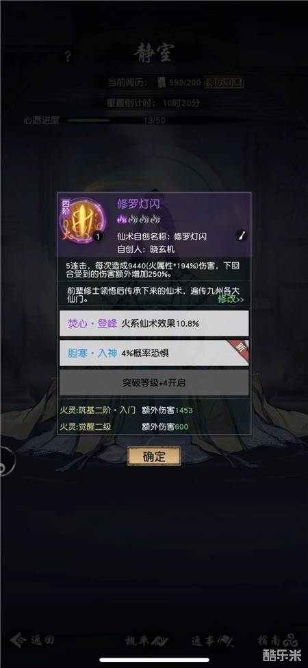各位可以在宗门-静室中,通过消耗阅历值,对已有的仙术刻印上属于自己的法印,并对仙术附加各种不同的效果。仙术可以重复领悟,且随着等级的提升,同一个仙术至多可以添加3条法印,最终获得自己满意的仙术效果。