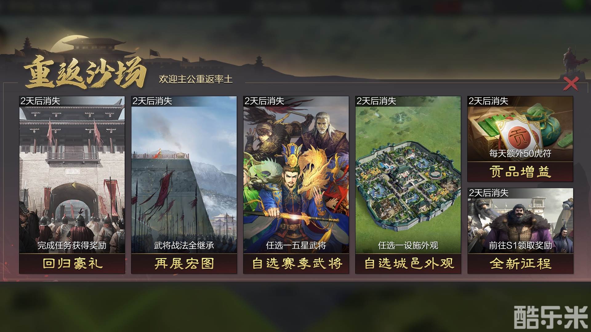 ③完成回归豪礼任务可额外获得虎符、5星【侍卫】等奖励
