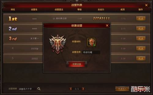 开启战盟系统后,在战盟界面点击[创建战盟],消耗[战盟令]即可拥有属于自己的战盟。