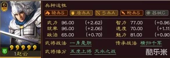 外加近乎完美的战斗四维(武力、智力、统率、速度),以及自带战法提供了额外的全四维属性各40-50点,直接就是一个超级兵摆在面前,我们要做的就是给赵云携带战法,给这个超级兵学会技能。