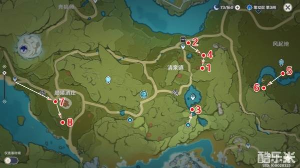 总览:这里先直接附上第三阶段8个丰饶之箱的点位总览,序号与游戏内赠礼留言的顺序一一对应,红色箭头代表推荐路线。后边也会附上每个点位详细的截图。