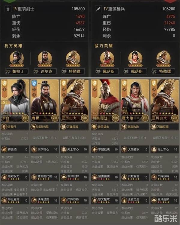 要是没有亚历山大,可以用大流士一世转剑替代,技能选择不变,坐骑用镇岳雷或特勒骠均可。技能方面没有命运的话,查理曼可以上锐利刃锋。