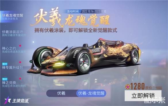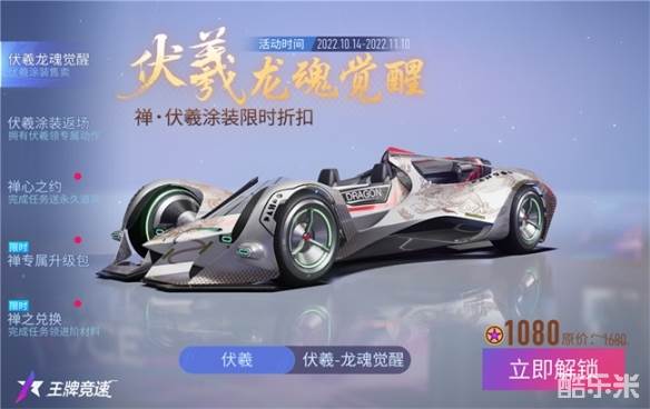 龙魂觉醒,吟啸赛场!不飙寻常路的休闲赛车手游《王牌竞速》禅-伏羲涂装限时折扣返场,禅-龙魂觉醒涂装震撼亮相,禅车辆进阶功能重磅开放,即刻登录游戏,与它一起,率性飞驰!