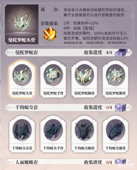 2件可激活魂骨专属的属性,4件可激活魂骨专属的技能。