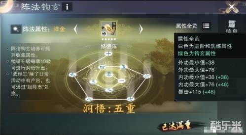 2.小知识:只有金属性的阵法洗练可以洗出来暴击属性。阵法的培养优先级高于阵法钩玄。