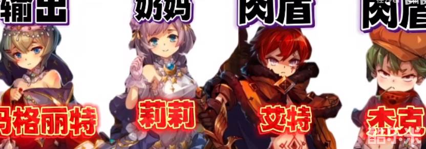 思路:先要一个爆炸的输出C位,然后能给全体加血的奶妈,这样就有了伤害和续航,最后随意搭配上两个前排肉盾就完成了。
