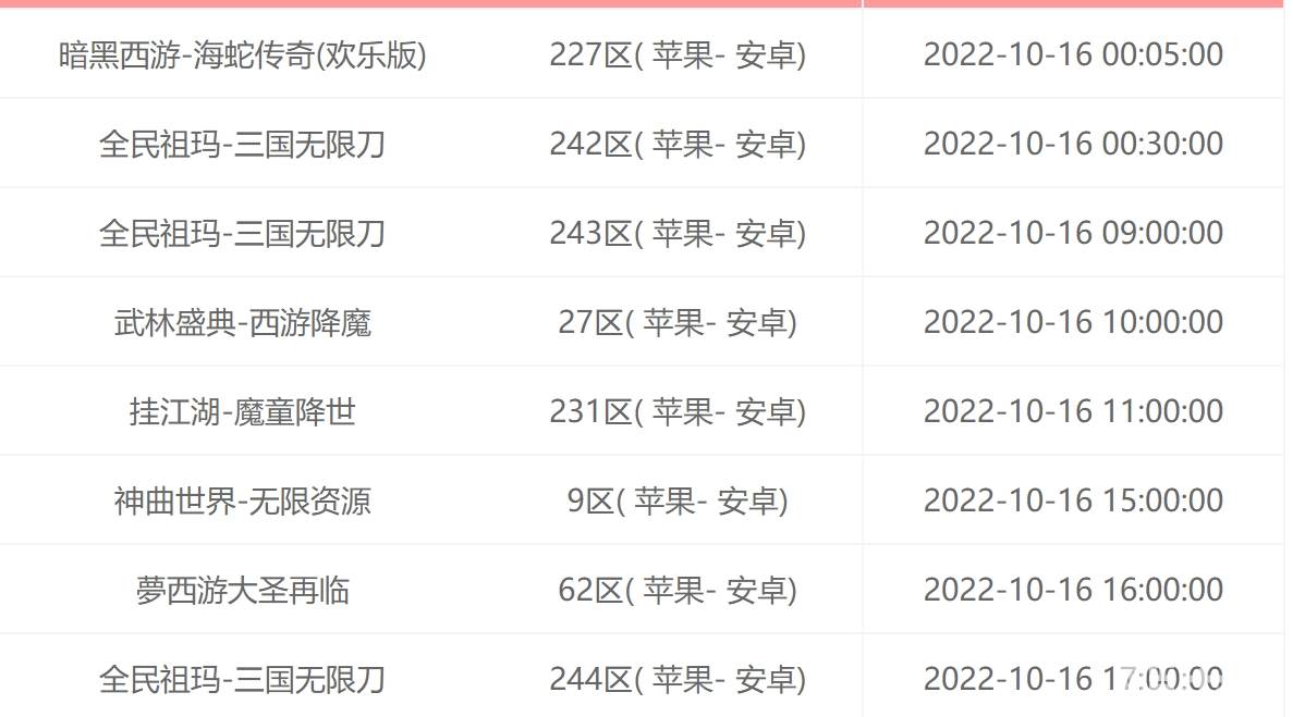 | 挂江湖-魔童降世 | 231区( 苹果- 安卓) | 2022-10-16 11:00:00 |