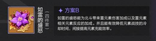 如雷的盛怒能为北斗带来雷元素伤害加成以及雷元素相关元素反应的加成。井且能有效降低元素战技的冷却时间,间接提高元素充能效率。