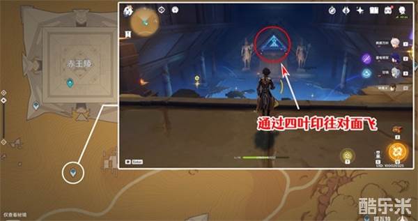 1、传送赤王陵南边,往右走进渡厄厅,用四叶印飞到北边。