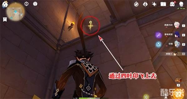 2、走道尽头发现四叶印飞上去。