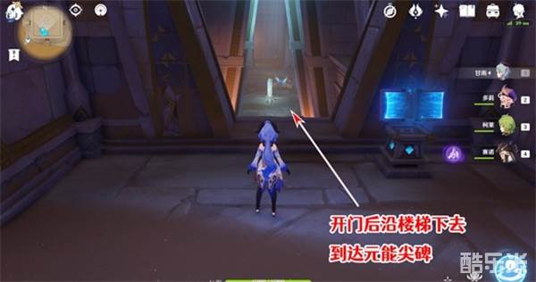 我们打开边上大门,沿着楼梯下去即可找到元能尖碑。